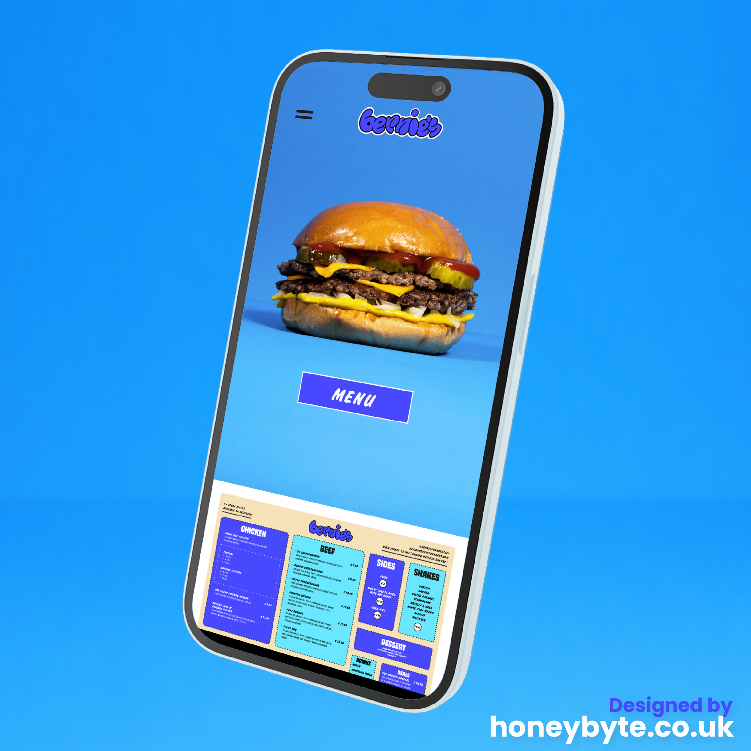 We worked closely with Bernie’s Burgers as a long-term design partner, delivering both branding support and a website focused on usability and visual impact.